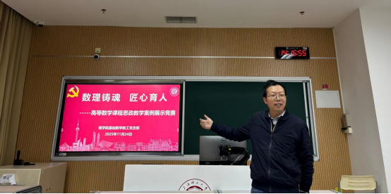 为进一步提升教师的课程思政意识,充分发掘数学基础课程的育人功能,2025年11月24日,理学院基础数学教工党支部在卓越楼527开展了“数理铸魂,匠心育人”为主题的高等数学课程思政教学案例展示研讨会。