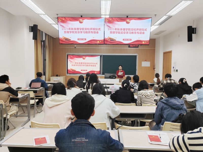 为深入学习贯彻习近平新时代中国特色社会主义思想、党的二十大及二十届四中全会精神,进一步筑牢学院入党积极分子与预备党员的思想根基,强化青年党员的党性修养与使命担当,引导其深刻理解党章的核心要义与实践要求,11月6日,理学院2025年秋季党校培训班第一讲正式拉开帷幕。本次培训由学院党建辅导员龚丹主持,并特别邀请学院党委副书记李晓庆作开班专题授课,全体秋季学期入党积极分子及预备党员参加学习。在培训中,龚丹系统阐述了党校培训的总体教学规划、阶段性学习任务与具体目标,详细说明了各项学习纪律、研讨要求以及最终的考核评价方式,为全体学员厘清了学习的主线与方向,指明了将理论学习转化为实践行动的有效路径。龚丹主持党校培训班开班在党校开班授课中,李晓庆以“党章学习教育”为主题,围绕“党章:共产党人的‘根本遵循’”、“党章演进:百年党史的生动缩影”、“践行党章:青年党员的行动自觉”三大核心板块展开理论授课。她引用“党章是共产党人的‘原教旨’”的论述为切入点,深刻阐释党章的核心地位。她指出,党章既是衡量党性修养的“尺子”,规范党员言行边界,更是映照初心使命的“镜子”。党章作为党的根本大法,是党员终身必修的“基