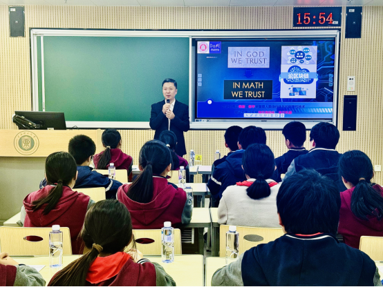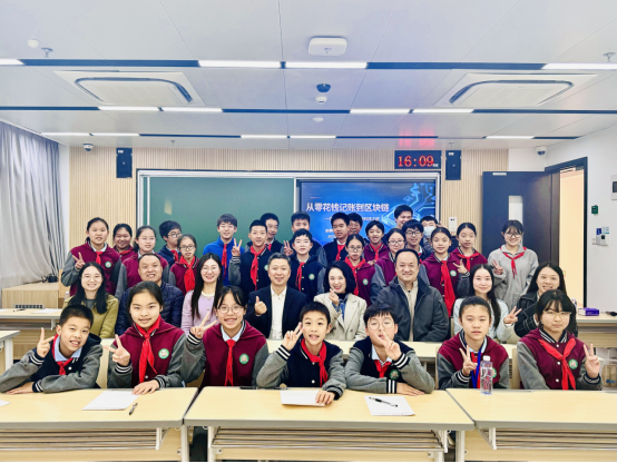 本次活动特邀华东师范大学数据学院赵春艳作专题讲座“从零花钱记账到区块链 —— 一场信任与未来的科技之旅”。她以中学生熟悉的“零花钱记账” 为切入点,巧妙将数学中的核算逻辑与生活场景相结合,随后逐步延伸至区块链这一前沿科技领域。用生动的案例、通俗的语言拆解区块链技术逻辑,让在场学生轻松理解数学在科技领域的应用价值。讲座过程中,多次与学生互动,围绕 “一本特殊的共享账本” ,“区块链的实际应用” 等问题展开讨论。现场氛围浓厚,讲座受到了与会师生的一致好评。