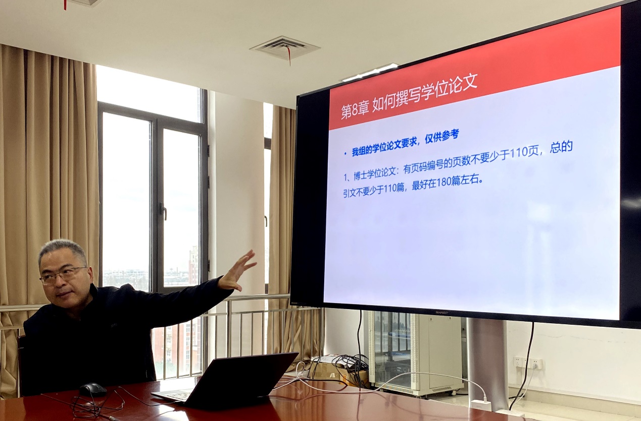 活动伊始,院长黄吉平以“学位论文撰写与科研成长”为核心作专题报告,分享了自己指导研究生撰写学位论文的实践经验。他从学位论文跟研究论文的异同、论文选题与框架、文献综述、撰写规范等方面着手,详细介绍了学位论文撰写指导的基本要求,并列举了近几年有代表性的研究生论文,具体分析其中的问题,深入浅出,让青年教师们受益匪浅。此外,他结合实例提醒青年教师,学位论文盲审中态度与规范性至关重要,需以严谨作风展现学术素养。黄院长的专题报告让青年教师们进一步明确了今后论文指导的工作方向和工作职责,为进一步提高研究生学位论文水平、提升研究生培养质量奠定了坚实的基础。理学院将持续完善导师队伍建设,为研究生成长成才提供有力保障。