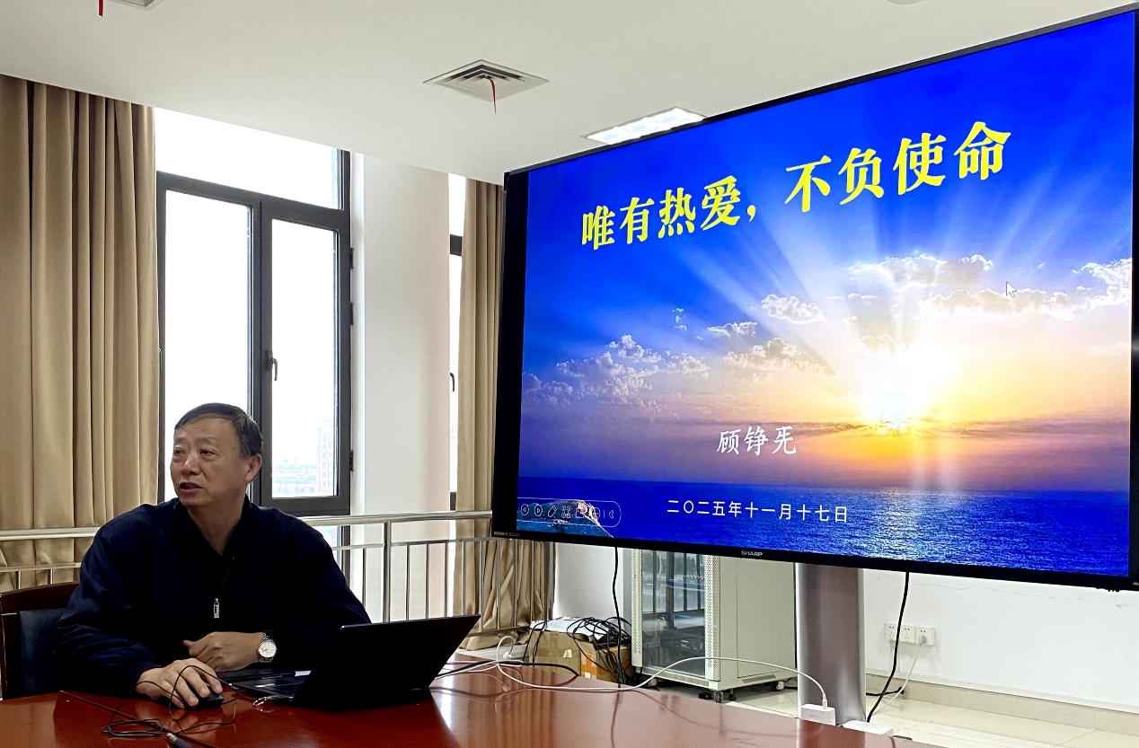 随后,顾铮𠀡教授以 “唯有热爱,不负使命”为题,结合三代教育世家的熏陶与自身从教经历,阐释了教育家精神的深刻内涵。他回顾了疫情期间,他坚守校园四个多月直播授课,身着防护服兼顾教学与核酸检测、深夜在南汇校区路灯下为学生答疑,他用行动诠释育人初心。