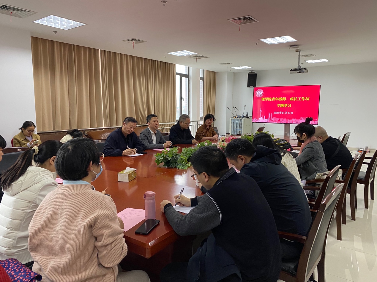 2025年11月17日,理学院青年教师成长工作坊专题学习活动顺利举行。理学院党委书记孟宝全、院长黄吉平、顾铮𠀡教授出席活动,工作坊成员及学院青年教师们齐聚一堂,共话教育使命初心与教学科研发展。活动由工会主席陆志雯主持。