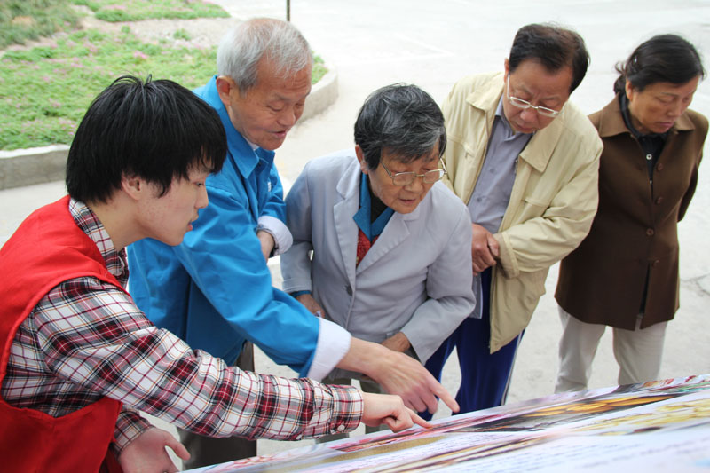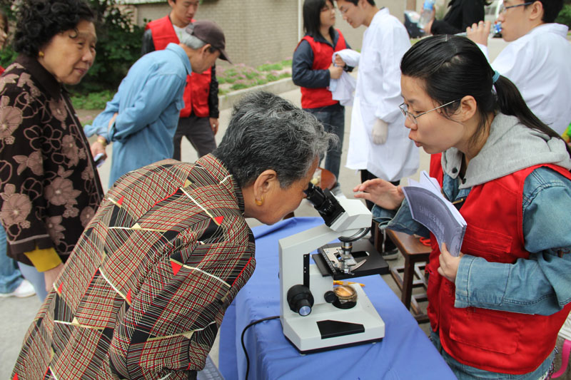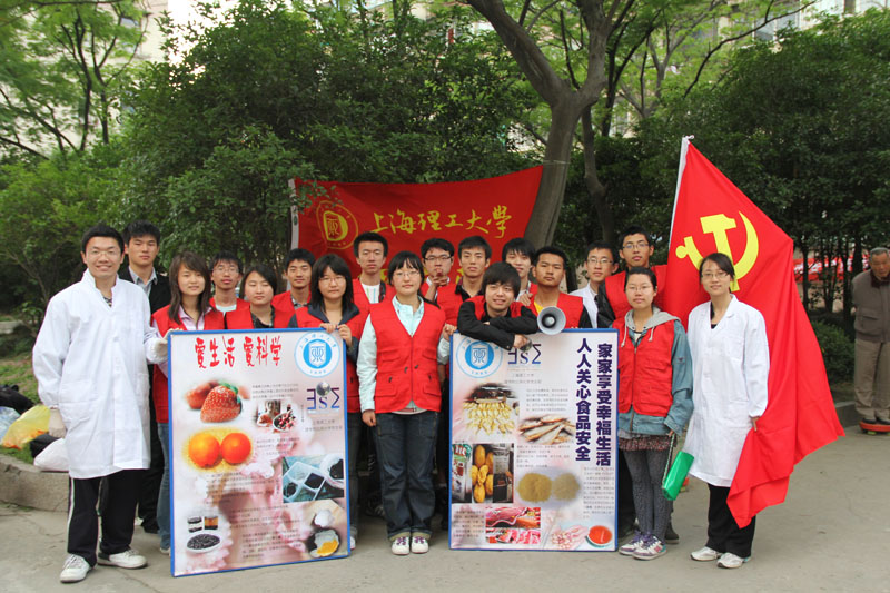 5月28日,虽然天气阴霾,但上海市定海定海街道纺平社区里却异常热闹。由上海理工大学理学院应用化学学生党支部组织的“食品安全,走进社区”特色活动正在如火如荼的进行着。