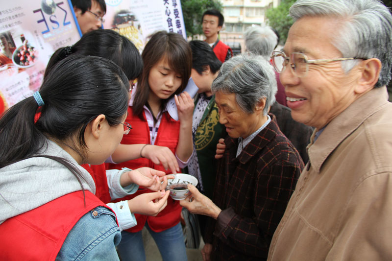 社区居民对本次活动报以极高热情与肯定,积极的参与其中,纷纷提出他们日常生活中对食品卫生和质量优劣甄别方法的疑惑。有一位老奶奶还从家里拿来了前几天刚从市场上买来的黑芝麻让同学们帮忙鉴定,虽然同学们希望食品安全问题尽量不要发生在居民的身边,但通过现场检测结果却发现这些芝麻都是有问题的染色黑芝麻,老奶奶很感激的一直说着:“谢谢你们,谢谢你们”。在这一声声的感谢中党员们的内心都被温暖着,回想从五月初活动的制定、食材的收集、宣传册的制作,劣质食品菌落的采集培养,到今天的活动的开展,近一个月的准备时间中,支部党员与积极分子付出的点点滴滴,这一句句一声声的感谢就是对他们最好的肯定。