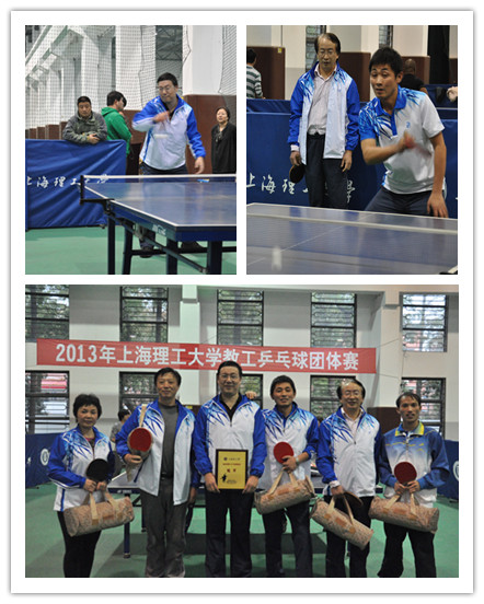 11月22日下午,由校体育运动委员会、校工会主办,校乒乓球协会、体育部承办的教工乒乓球大赛上,我院顾铮先、刘廷禹、马杰、梁丽萍、陈俊和余志先老师组成强大阵容参赛。在小组赛中,我们先后以较大的优势战胜了环境学院、财保基建联合队、医疗器械学院,以小组第一名的成绩顺利出线;半决赛对阵社科基础联合队,比赛进行的惊心动魄,场面激烈,以5:0的比分晋级。面对决赛的老对手图书馆代表队,我院的几位老师再次展示了各自高超的技艺,最终以4:1的比分再次斩获桂冠,成就四连冠的壮举。