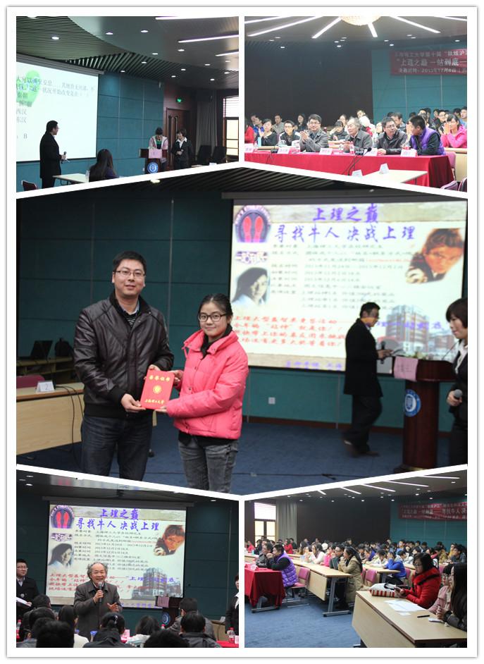 为丰富校园生活,引领校园文化,拓宽研究生的知识面和思维应变能力,理学院策划并承办了“秋炫沪江”科技文化节系列活动之 “上理之巅” ——“寻找牛人 决战上理 上理一站到底”人文、科技综合知识竞技赛。此次竞技赛采用了新颖的比赛形式和比赛规则,使现场同学在快乐中丰富知识,在比赛中建立友谊。