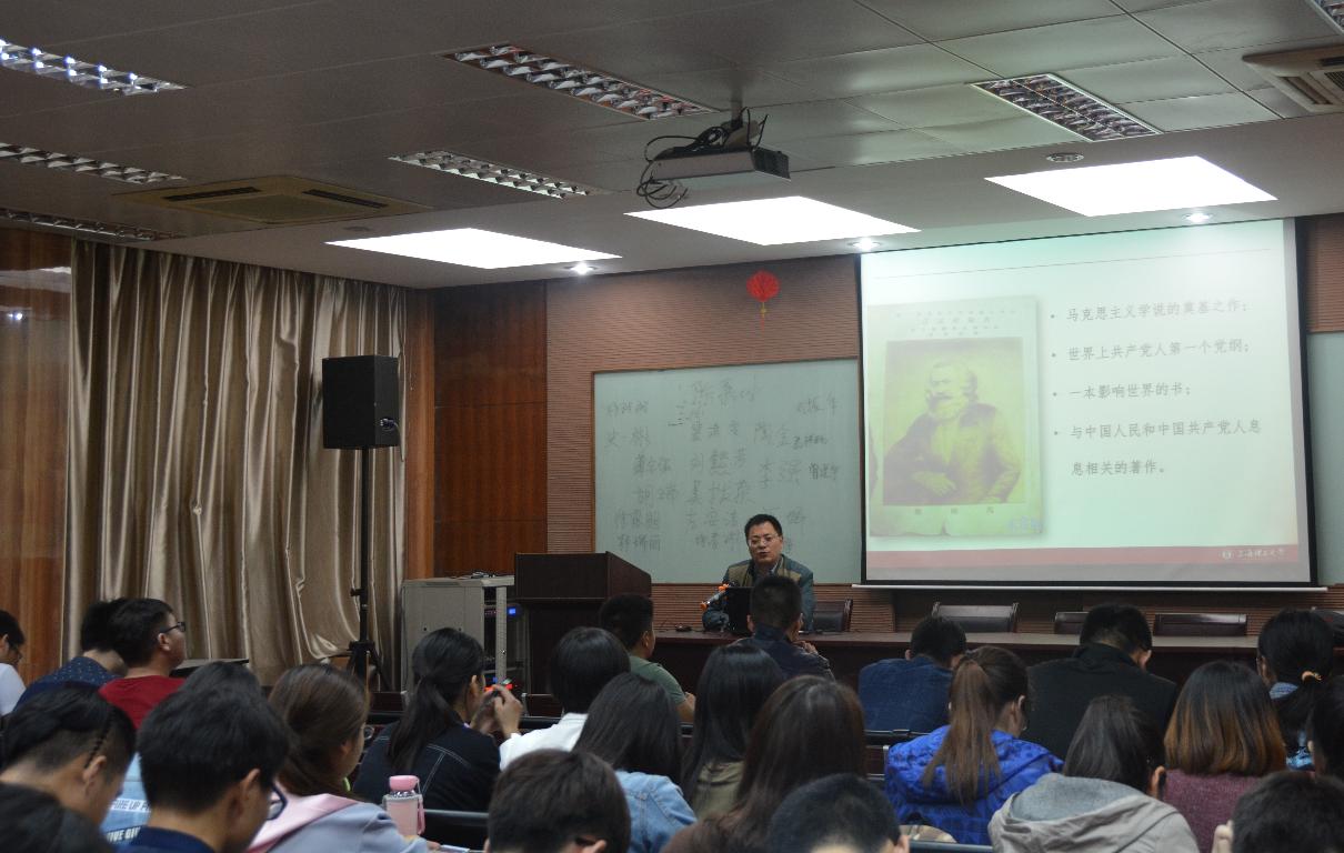 10月21下午,在理学院报告厅举行对《共产党宣言》的相关学习教育暨二级党校开班理论课第二讲。社会科学学院胡绪明担任报告主讲人,理学院本期二级党校的入党积极分子参加了报告会。