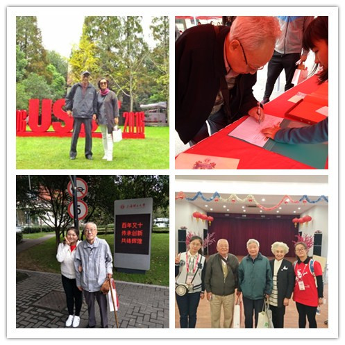 沪江化学52届老校友(黄曰侯、傅丰昌、顾志澄、严文俊和施怀炯)返校贺校庆
