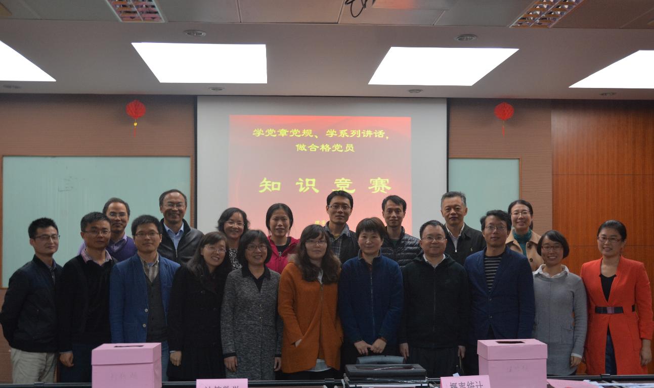 本次竞赛活动以《中国共产党党章》、《中国共产党廉洁自律准则》、《中国共产党纪律处分条例》、习近平总书记系列重要讲话、十八届六中全会精神为主要内容,活动现场分为必答、抢答和风险三个环节,每个环节开始前主持人都会宣读比赛规则。必答题环节,各队稳扎稳打,不分胜负;抢答题环节,各队配合默契、踊跃作答;风险题环节,各队根据自身成绩,谨慎选择,群策群力,精彩的表现赢得阵阵掌声。比赛中气氛愉快活跃,经过各个环节的激烈角逐,计算数学党支部获得一等奖,概率统计党支部和物理党支部获得二等奖,基础数学党支部、应用数学党支部和化学党支部获得三等奖。