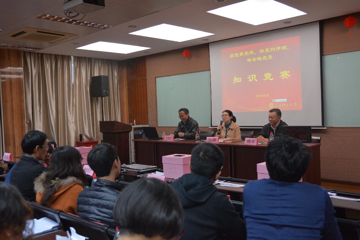 为深入开展“两学一做”学习教育,加强基层党组织建设和凝聚力,积极营造以赛促学、以学促用的浓厚氛围,11月8日上午,理学院在报告厅举办了“学党章党规、学系列讲话,做合格党员”知识竞赛活动。党校教务长孔娜、外语学院党委书记魏东及理学院党委书记彭宗祥担任了此次活动的评委。